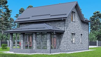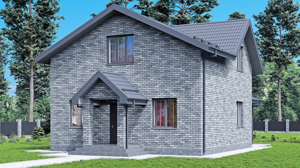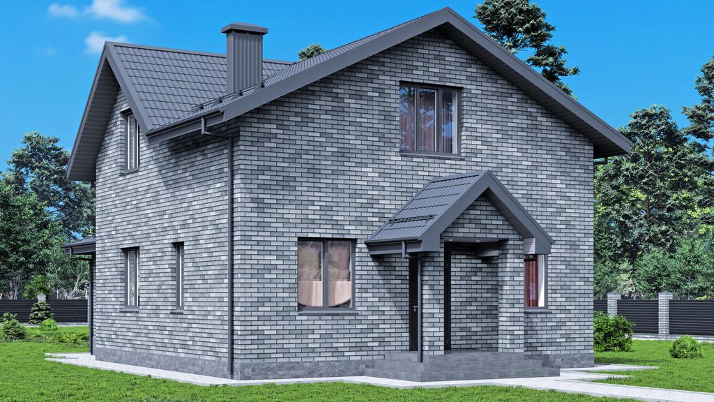 Эстетика и защита: Фасадная отделка выполняется облицовочным кирпичом, что придает дому респектабельный внешний вид и обеспечивает надежную защиту от внешних воздействий при минимальных затратах на обслуживание.